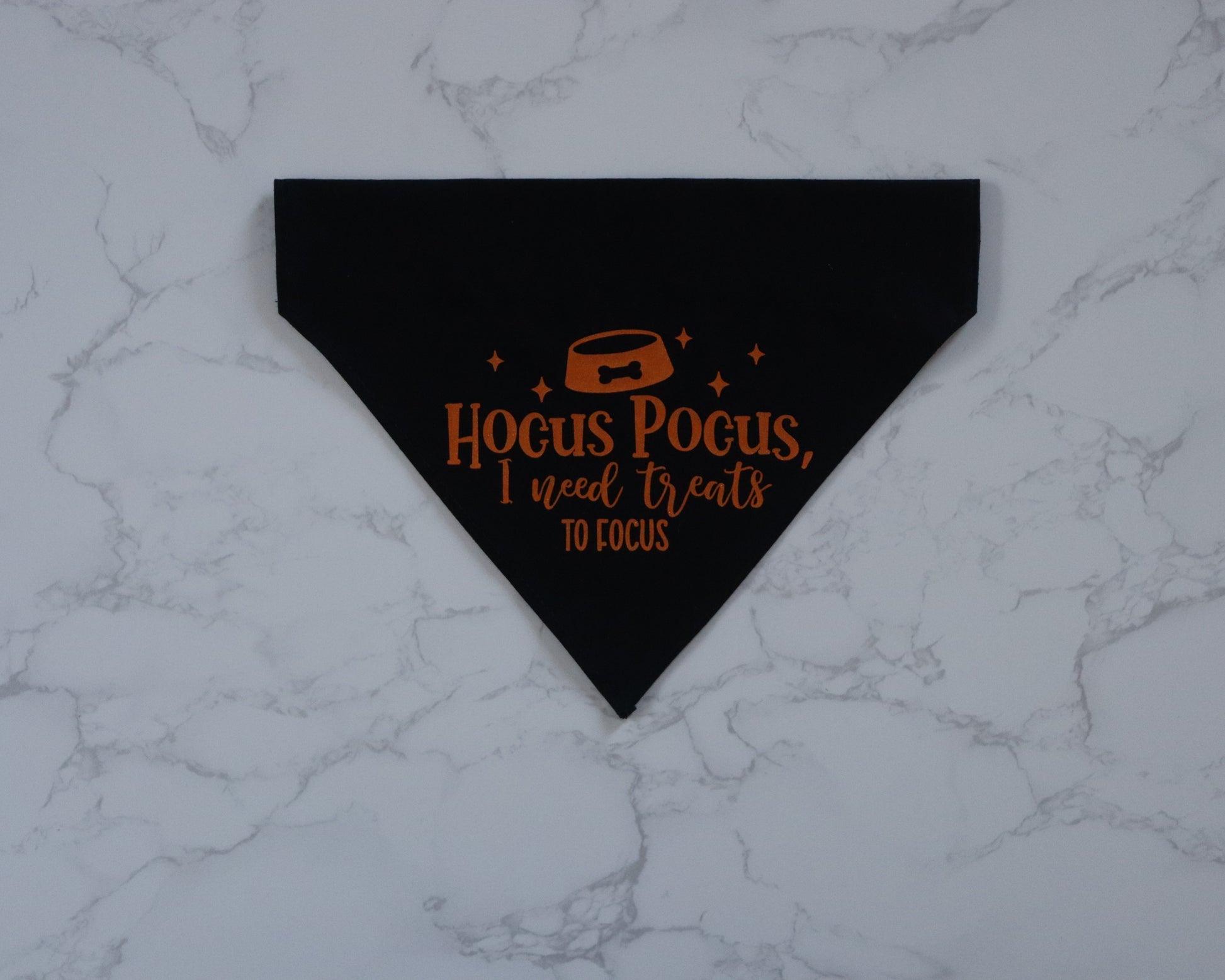 For dogs who know that snacks are serious business, this Halloween bandana casts the perfect spell. Featuring the playful phrase “Hocus Pocus, I Need To Treats To Focus”, it’s a magical mix of mischief and sparkle—handmade from 100% cotton and finished with premium sparkle vinyl that twinkles like a witch’s wand.